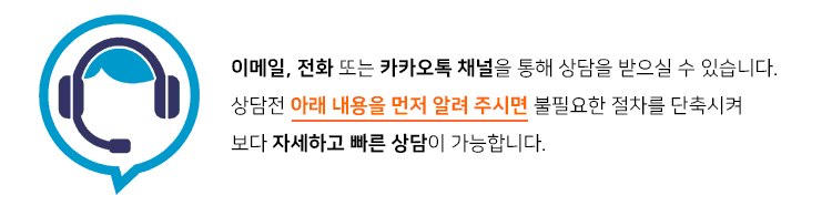 전화보다 이메일 또는 카카오톡 상담이 더 빠르게 진행될 수 있습니다.